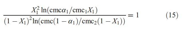 這些結(jié)果已通過使用規(guī)則溶液理論得到進(jìn)一步證實(shí),該理論不僅表征了混合膠束中的相互作用參數(shù)bmic 12,而且還解釋了與理想的偏差[32]。X1是膠束中DPS的摩爾分?jǐn)?shù),可根據(jù)以下方程式迭代計(jì)算: