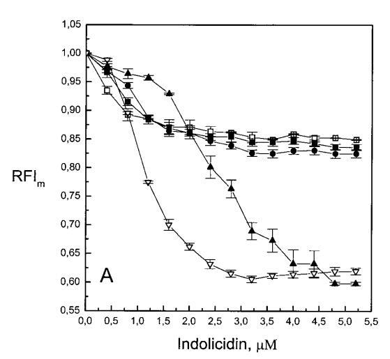 這兩種抗菌肽對芘標記的磷脂類似物的猝滅機制令人感興趣??赡苌婕唉?陽離子相互作用(Dougherty,1996),后者由肽的堿性殘基表示。吲哚西丁具有較高的Trp含量(39%),可促進其分配到脂質(zhì)雙層(Wimley和White,1996)。因此,芘和色氨酸之間的π-相互作用也是可能的。已經(jīng)證明,色氨酸可以淬滅膠束溶液中各種芘衍生物的熒光發(fā)射(Encinas和Lissi,1986;Altamirano等人,1998)。另一種可能性是鏈反轉(Holopainen et al.,1999),通過肽與脂質(zhì)雙層結合,導致芘部分調(diào)節(jié)到更極性的環(huán)境中,從而增加熒光團微環(huán)境的極性,并導致量子產(chǎn)率降低。