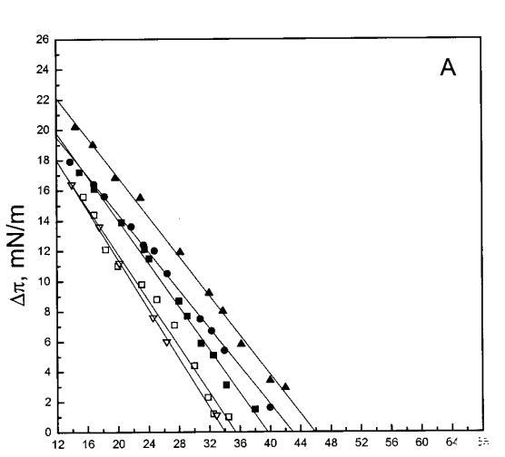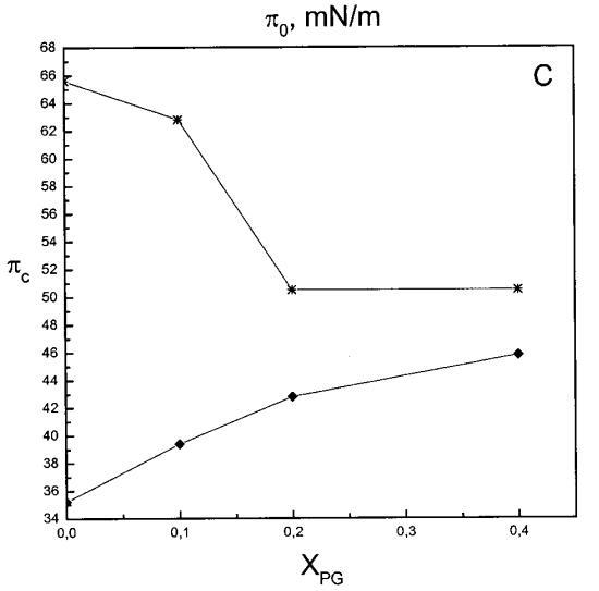 吲哚西丁的π也顯著增加,顯示其插入SOPC單層(圖1b)。然而,吲哚青素的膜活性明顯高于magainin 2,具有πc≈65mN/m,用于SOPC膠片。與magainin 2類似,單層中POPG含量的增加增強了吲哚青霉素的滲透,增加了?π低于~38 mN/m,與肽和脂質(zhì)單層之間的靜電相互作用一致。然而,在后一個表面壓力值之上,吲哚西丁引起的π增量被POPG減弱。因此,與magainin 2相反,在存在POPG的情況下,πc減?。▓D1c),在XPG=0.4時從~65 mN/m(對于SOPC單層)變?yōu)閪50 mN/m。在SOPC單層中,吲哚西丁增加的π也被膽固醇(X=0.1)增加,而πc降低至~54 mN/m。圖1所示的magainin 2和吲哚西丁的模式非常不同,后一種肽的明顯交叉點為~38 mN/m。