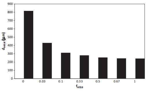 圖8給出了以與圖3相同的HFBII:WPI比率制備的兩種泡沫的初始氣泡尺寸。最重要的觀察結果是,少量HFBII(來自fHFBII 0.03)在很大程度上影響泡沫的初始氣泡尺寸。此外,似乎從WPI主導向HFBII主導的行為轉變發(fā)生在fHFBII~=0.2,對應于朗繆爾槽中吸附層中觀察到的轉變(圖6)。