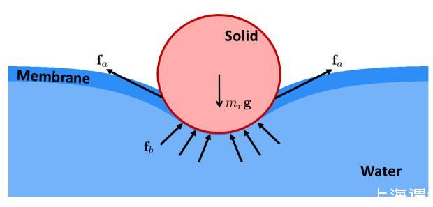 其中是流體表面的面積,稱為表面張力系數(shù)。當(dāng)流體與固體發(fā)生作用時(shí),流體表面的分子同時(shí)會(huì)受到固體分子的作用,從而將表面張力作用在固體上。固體根據(jù)表面特性不同可以分為親水和疏水兩類,疏水材質(zhì)在水面上會(huì)受到向上的表面張力作用,對(duì)于一些細(xì)小的結(jié)構(gòu)來(lái)說(shuō)這個(gè)力要比浮力更為明顯。比如說(shuō)水黽是一種可以生活在水面上的昆蟲(chóng),它的腳非常細(xì)長(zhǎng),并且有很多絨毛來(lái)保持疏水特性,因而水黽可以依靠表面張力維持自身的重量,并通過(guò)腳來(lái)劃動(dòng)水面來(lái)向前運(yùn)動(dòng)甚至跳起。