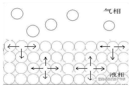 表面張力是因液體內(nèi)部分子間的內(nèi)聚力而產(chǎn)生的,表面分子由于受力不均衡而受到向內(nèi)的作用力,與其它作用力形成平衡。原理示意如下:
