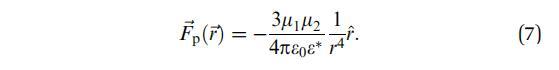正如預(yù)期的那樣,對于較大距離,它減少到兩點偶極子r 4的力。這些表達式不描述實驗相關(guān)區(qū)間(2+0.1)R 10R內(nèi)的域之間的相互作用,因此必須對等式(4)進行數(shù)值積分。與解析表達式相比,該4D積分在模擬中代表了更多的計算工作量。這就是為什么更容易近似磁疇中心點偶極子的相互作用,偶極矩mi表示磁疇區(qū)域上的偶極密度,mi=sAi。然后,垂直于界面的點偶極子的對電勢為