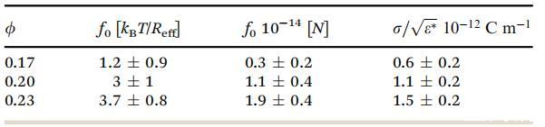 在模擬中,f0以kBT/Reff為單位,這是因為Reff是距離單位,kBT是能量單位。因此,在用物理單位表示f0時,必須考慮T和Reff的不確定性。然而,經(jīng)過誤差分析,我們發(fā)現(xiàn)Df0僅由(Df0)Df的貢獻(xiàn)決定。