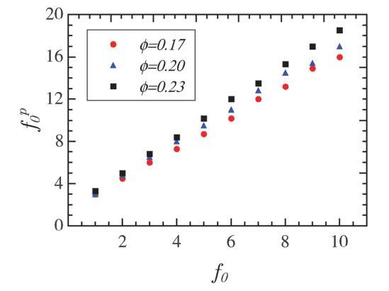 由于點偶極子模型的簡單性,值得尋找兩個模型之間的對應(yīng)關(guān)系。為此,我們確定了一組f0在三個不同面積分?jǐn)?shù)下的有效相互作用強度f p0。對于感興趣的參數(shù)范圍,可以在圖10中看到f p0和f0之間的關(guān)系。該圖有助于選擇適當(dāng)?shù)膄 p0,以便通過僅基于更簡單的點偶極子模型進(jìn)行模擬來計算單層的結(jié)構(gòu)特性?;蛘?,如果實驗對相關(guān)函數(shù)由點偶極子近似建模,則sffi ep的值可以使用根據(jù)該圖估計的相應(yīng)f0計算。