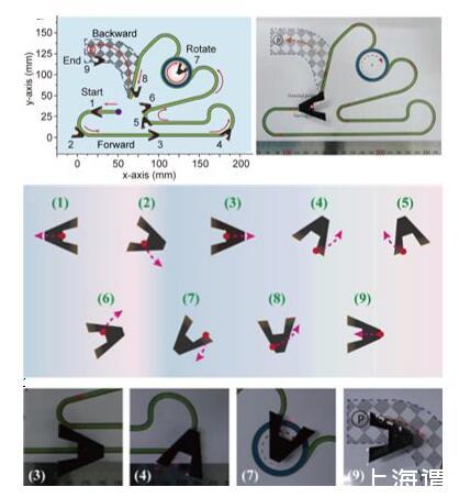 通過實(shí)驗(yàn)探索發(fā)現(xiàn)三角形的驅(qū)動薄膜在光照射底邊可以很快游動,但卻存在方向性不可控的缺陷。要使其可完成液面直線游動、轉(zhuǎn)彎、自旋轉(zhuǎn)等操作,三角形薄膜顯然難以辦到。