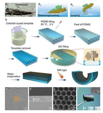 彈涂魚具有陸地爬行、水中游泳、泥中跳躍的獨(dú)特特征,是一種具有多場景適應(yīng)能力和多功能驅(qū)動行為的魚類。受彈涂魚啟發(fā),中國科學(xué)院蘭州化學(xué)物理研究所固體潤滑國家重點(diǎn)實(shí)驗(yàn)室表面與界面研究團(tuán)隊(duì)開發(fā)了一種能對各種環(huán)境做出響應(yīng)的智能光驅(qū)動器。