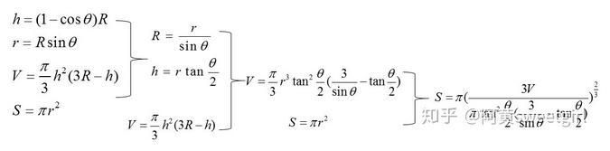 此時(shí)根據(jù)球的體積公式,以及簡(jiǎn)單的三角函數(shù)變換,就可以得出S與V和θ的關(guān)系,具體推導(dǎo)過(guò)程如圖2所示。