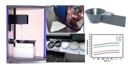圖1 測量涂料的表面張力裝置實驗圖及涂料樣品的表面張力數據