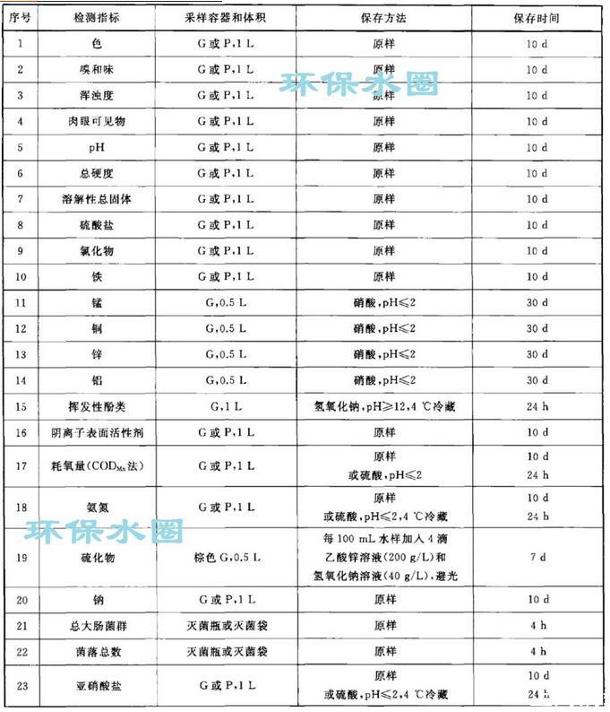 地下水質(zhì)量檢測指標(biāo)推薦分析方法