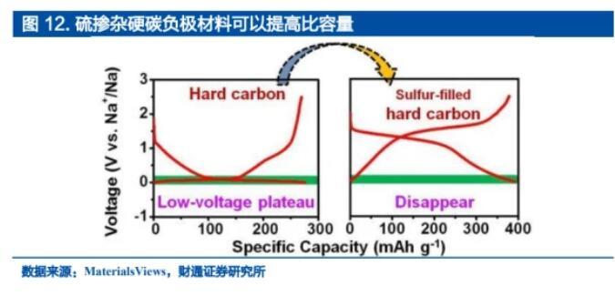 可以用作鈉電池負極的無定形碳主要分為硬碳和軟碳。其中在2500°C以上的高溫下能石墨化的為軟碳,在2500°C以上的高溫下不易石墨化的為硬碳。無定形碳儲鈉能力好、可逆比容量高、循環(huán)性能好,商業(yè)化趨勢明顯。同時軟碳和硬碳都可以通過原子摻雜提高材料的層間距,制備納米結(jié)構(gòu)碳材料縮短鈉離子擴散途徑等方式提高電化學(xué)性能。