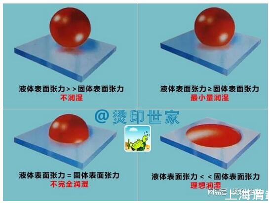下圖直觀演示了四種潤濕情況: