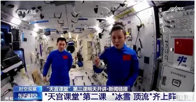 在約45分鐘的授課中,航天員演示了微重力環(huán)境下太空“冰雪”實驗、液橋演示實驗、水油分離實驗、太空拋物實驗,講解了實驗現(xiàn)象背后的科學(xué)原理,還展示了部分空間科學(xué)設(shè)施。