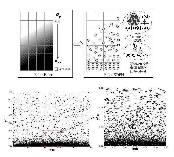 為解決現(xiàn)有模型和算法在求解氣-粒兩相流動問題遇到的不足,基于顆粒動力學模型,通過增加SPH粒子所表征的顆粒的材料屬性,推導SPH粒子屬性與顆粒屬性間的關系式,將SPH改造成適于離散相求解的SDPH方法,建立SPH粒子與真實顆粒間的一一對應關系;在此基礎上,分別采用SDPH方法和FVM對TFM模型中的離散相和連續(xù)相進行求解,推導SDPH和FVM離散方程組,搭建SDPH與FVM耦合框架,實現(xiàn)SDPH-FVM耦合算法流程。