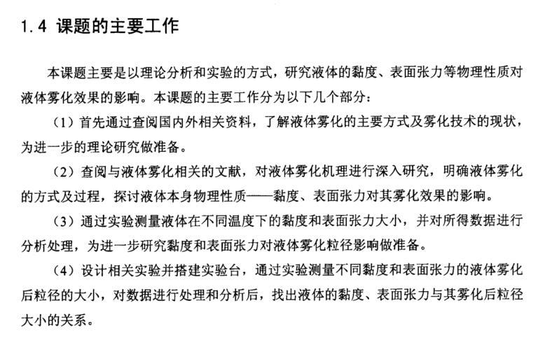 【摘要】:本文首先通過查閱文獻(xiàn),對液體的霧化機(jī)理進(jìn)行了理論研究,探討了黏度和表面張力對液體霧化的影響。然后文章通過對液體在不同溫度下的黏度和表面張力大小的測定及黏度和表面張力對液體霧化粒徑大小影響的實(shí)驗(yàn)研究,得出了黏度和表面張力對液體霧化粒徑大小的影響規(guī)律。