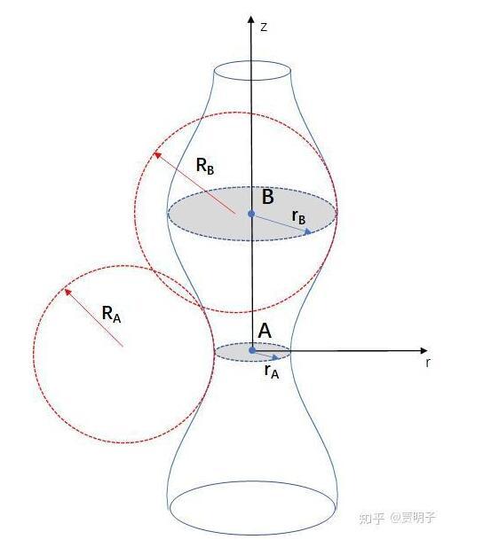 在A點,z方向上產(chǎn)生了負曲率(半徑RA),而r方向上,由于半徑變小,曲率變大。也就是說,A點上的曲率變化產(chǎn)生了兩個效果: