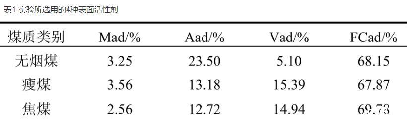 (3)表面活性劑因其自身的理化性質(zhì)不同,其對(duì)不同煤質(zhì)的潤(rùn)濕性也不同。