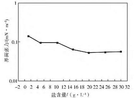 b.黏濃曲線體現(xiàn)出VES J良好的增黏特性,且在質(zhì)量分?jǐn)?shù)為0.02%時可使與W斷塊原油間油水界面張力降至10-2數(shù)量級;一定質(zhì)量分?jǐn)?shù)的無機(jī)鹽對黏彈性表面活性劑VES J的黏度特性產(chǎn)生積極影響,且體系可在礦化度30g/L時達(dá)到10-2數(shù)量級的界面張力,體現(xiàn)了復(fù)配體系良好的耐鹽特性;90℃較25℃黏度保留率達(dá)到74.6%,W地層溫度(65℃)有利于發(fā)揮體系降低油水界面張力能力。